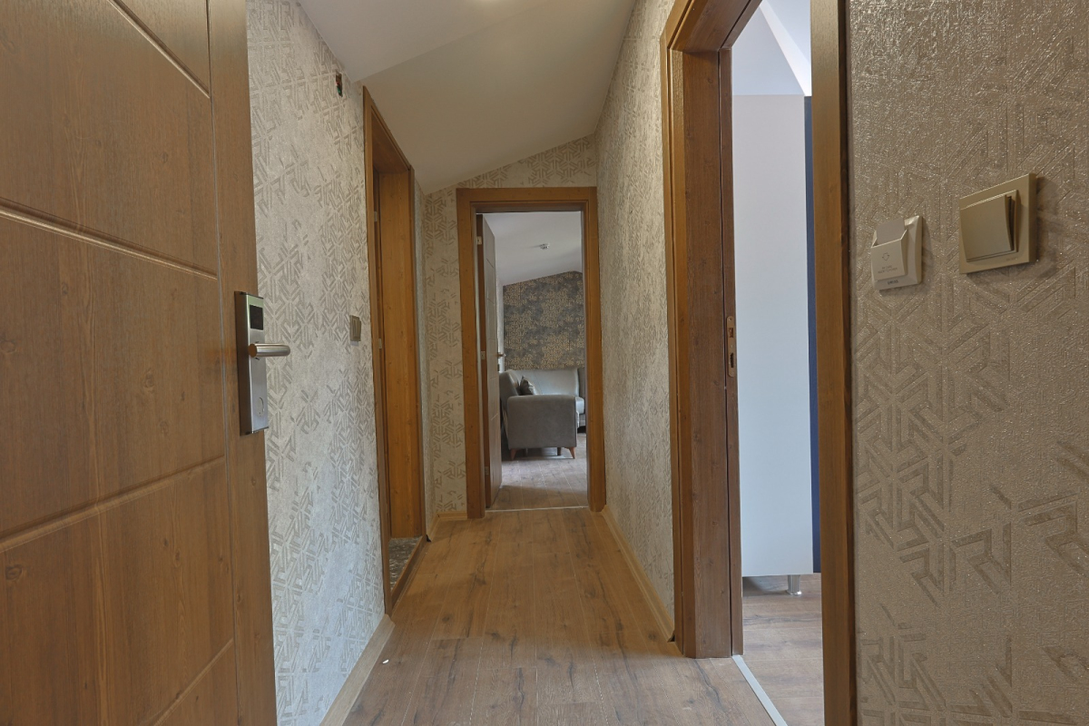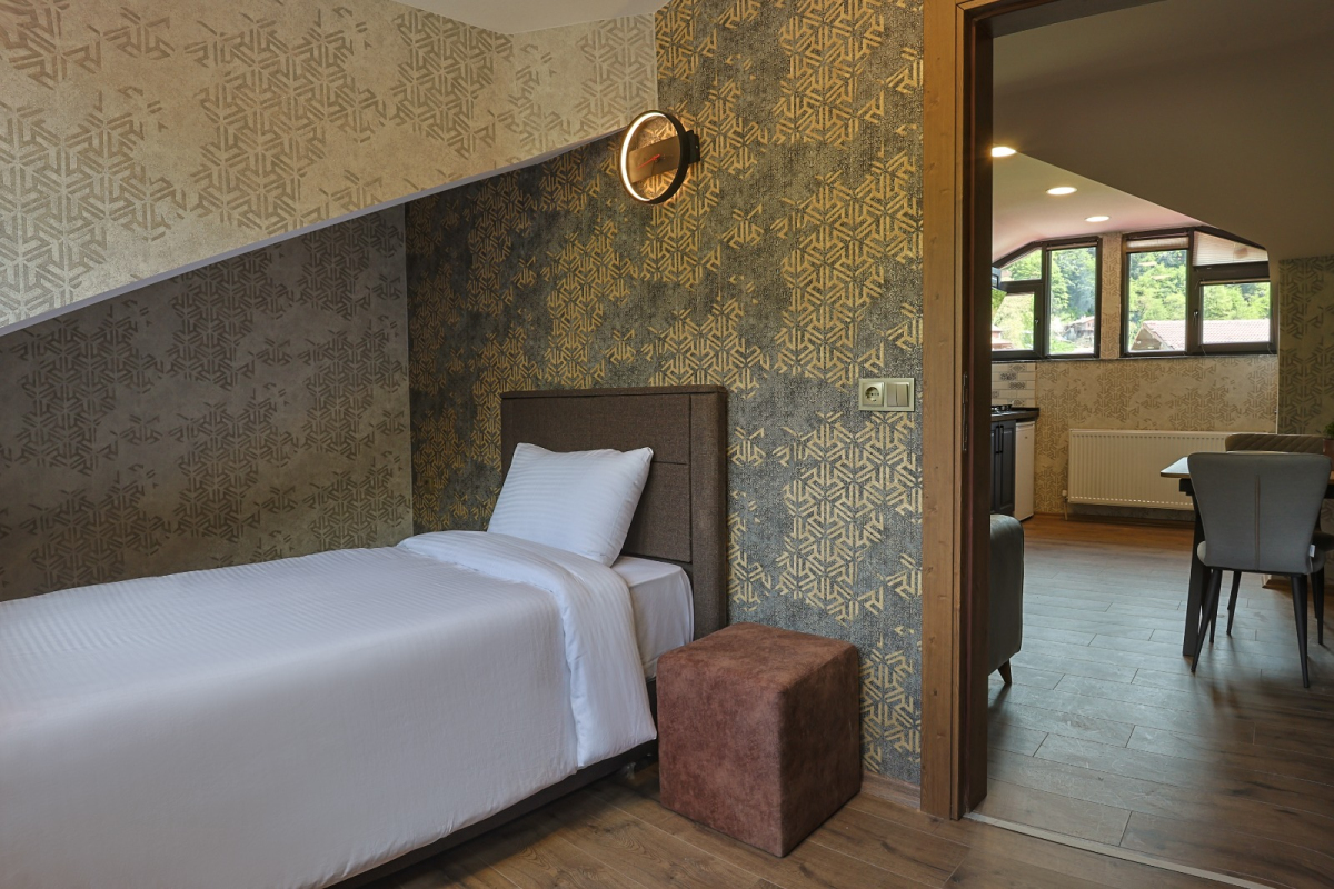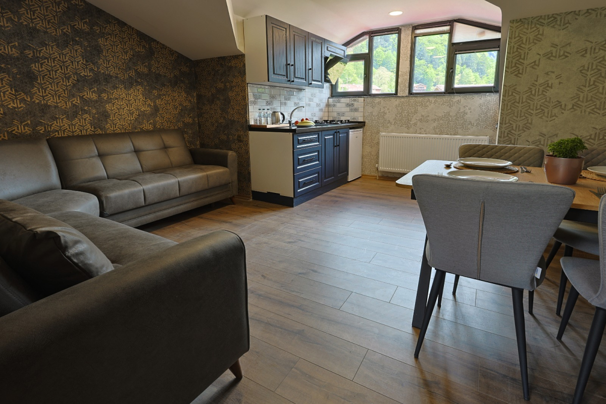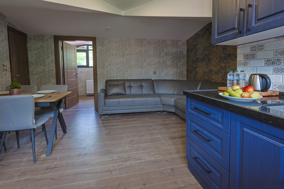 Family Suite; 1. yatak odası (çift kişilik yatak ve Ebeveyn banyosu), 2. yatak odası (2 adet tek kişilik yatak) Mutfak, Oturma alanı, Yemek masası, Koltuk ve bir adet banyodan oluşmaktadır. Suite 5 kişiliktir. Daire içerisine 1 adet extra yatak atılabilmektedir. Daire 76 m2 dir.